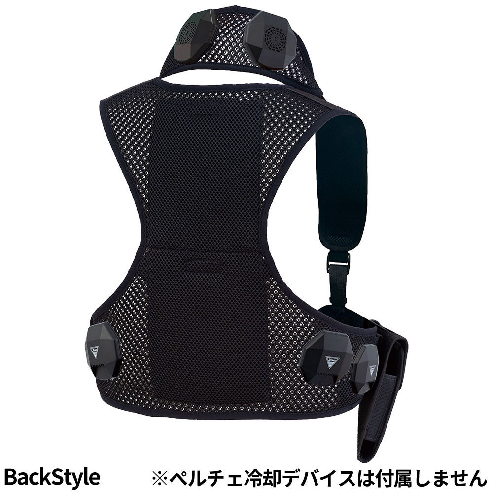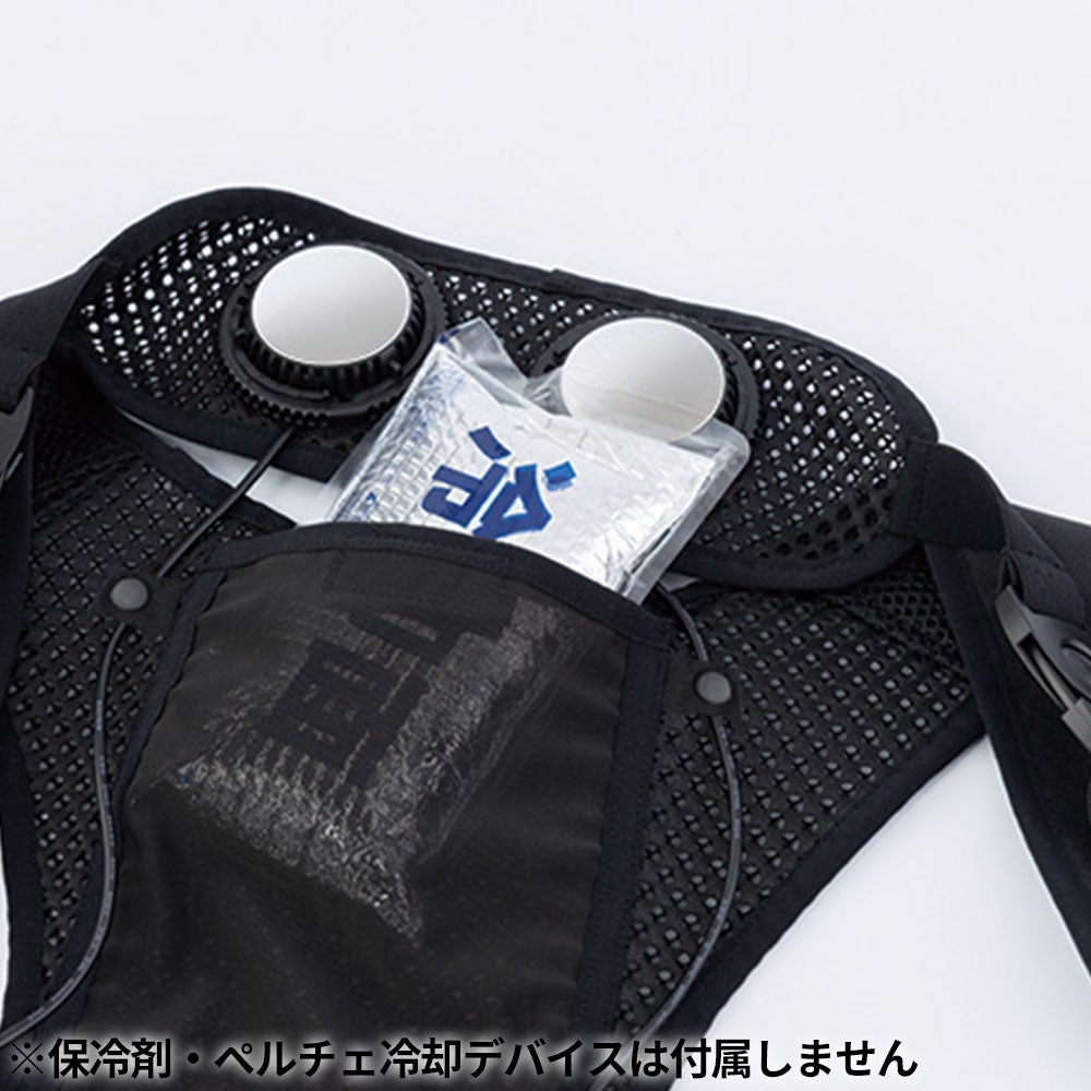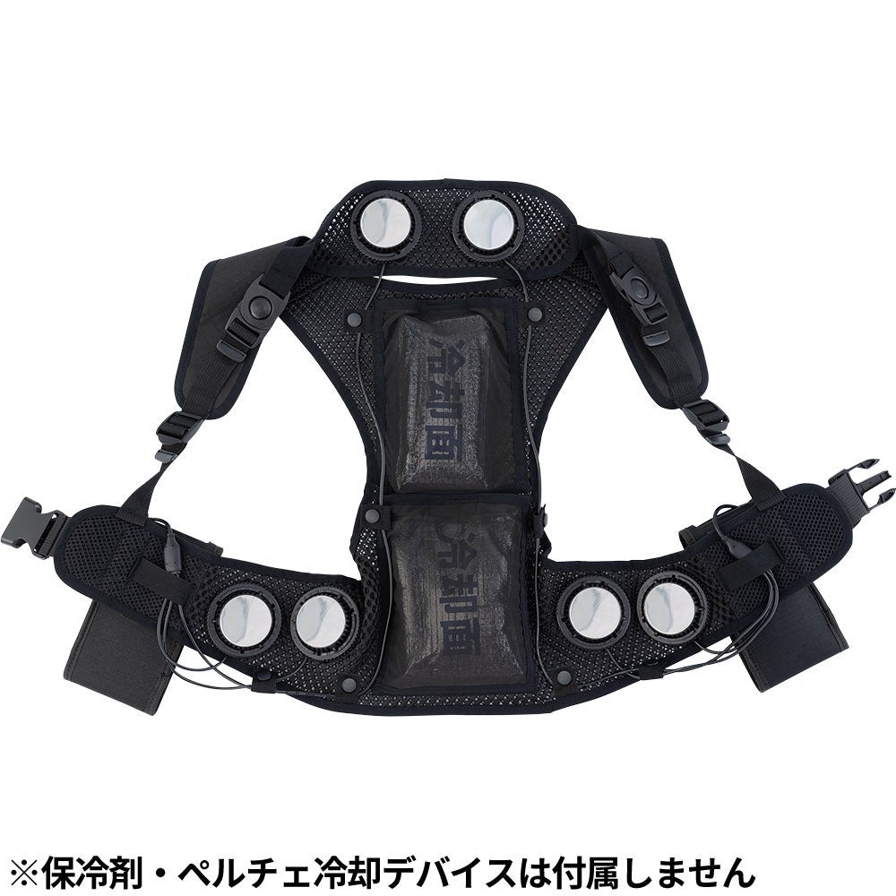 ペルチェ冷却ベスト単体。デバイスもバッテリーも自由に組み合わせ。 ペルチェデバイス装着用のメッシュベスト単体商品。通気性の良いラッセルメッシュに保冷剤ポケット・バッテリー収納ポケットを装備。フロントバックルとベルト紐でサイズ調整可能な8サイズ展開。洗い替え用や既存デバイスと組み合わせたい方に最適な2026SS新商品。