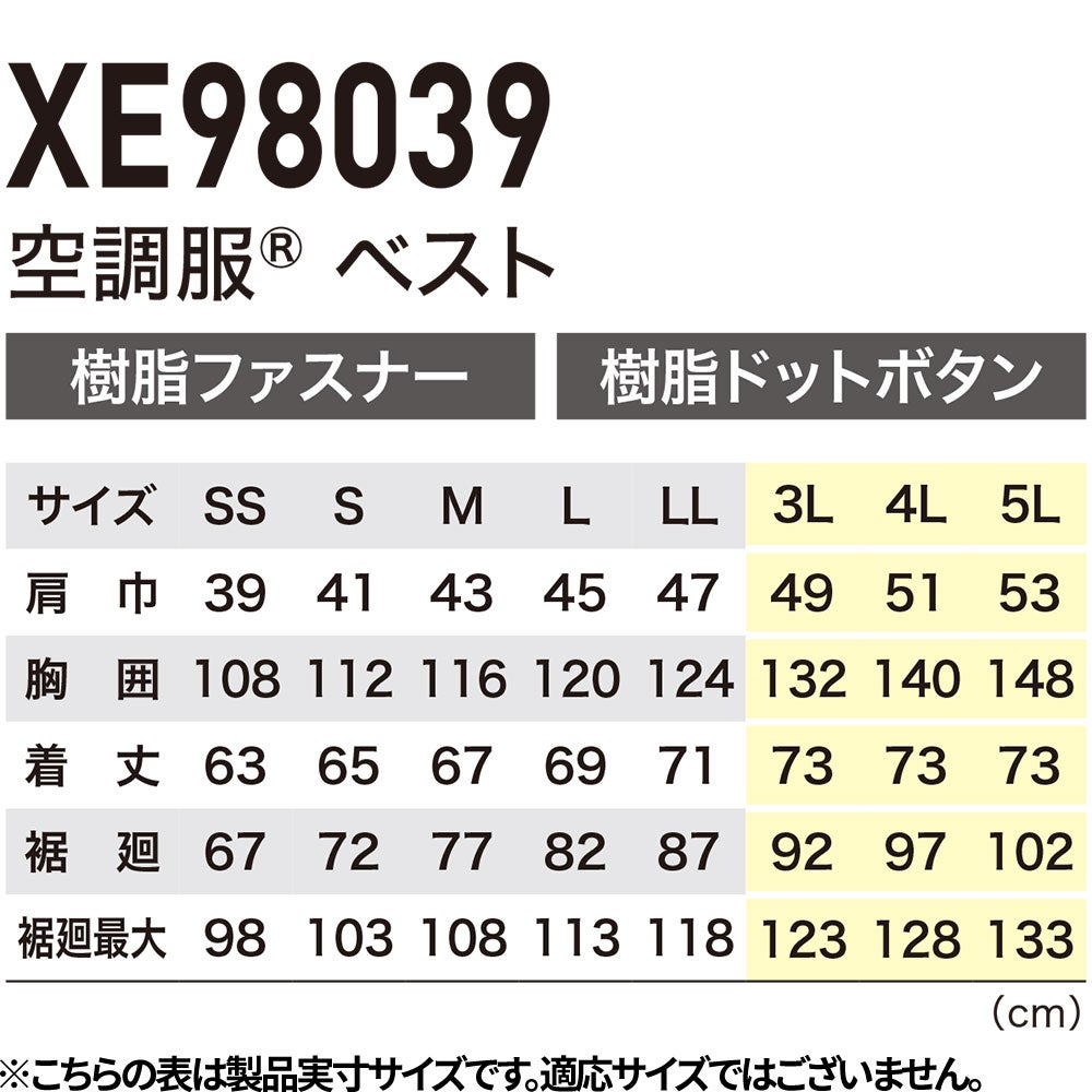 CO2由来エコ素材×遮熱×JIS制電。腕が自由なサイドファン仕様のエコ遮熱ベスト。 XE98037シリーズのベストモデル。CO2由来の高密度ポリエステルを使用したエコ空調服。遮熱コーティング(-5℃)・UVカット(UPF50+)・JIS T8118帯電防止適合。サイドファン仕様、袖口はニットバインダー仕様で空気が抜けにくく冷風が効率よく回る。(2026SS新商品)