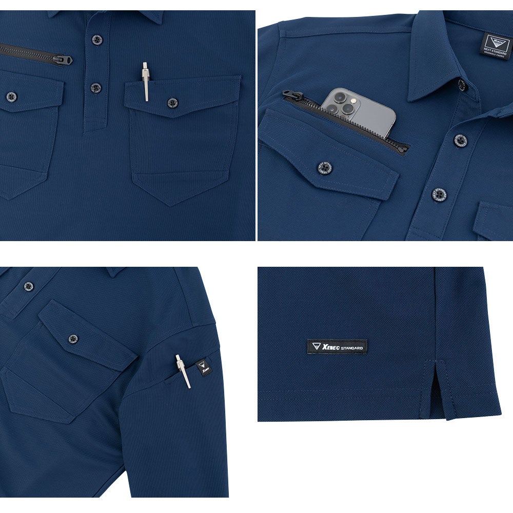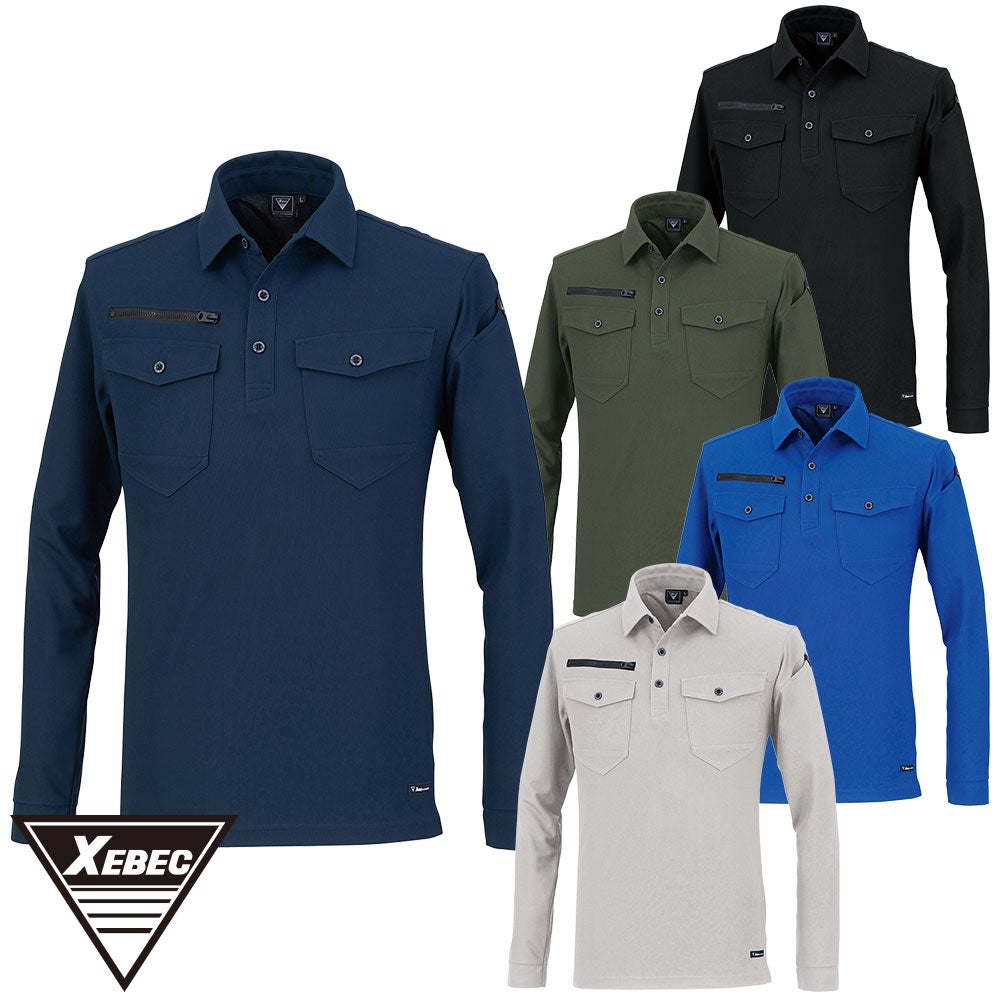 作業服 ポロシャツ 長袖 ジーベック XEBEC 長袖ポロシャツ 6305 作業着 通年 秋冬 長袖ポロシャツ JIS T8118 帯電防止 UVカット 吸汗速乾 消臭 ストレッチ