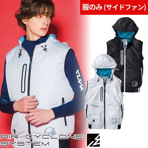 アイズフロンティアが放つEFウェアの新たなる世界観スポーツマインドをプラスした新感覚アクティブモデルが更なるアップデート ■アクティブなその世界観でワークシーンに新たなるスタイリングを確立したスポーツカジュアルテイストモデルが鮮やかにリニューアル■シームテープ付きポケット止水ファスナーやジャガードロゴ入り裾ゴム、ロゴ刺繍入りパイピングテープ等を大胆に採用し、スポーティーで新鮮なルックスを実現■生地表面にはエンボス加工を施し、さりげなくブランドロゴを表現■適度な密封性と引裂き強度を併せ持つポリエステルタフタを使用。エアロフロー効果を最大限に高めます。■従来のタフタ素材商品より高密度&軽量化を実現。更なる高級惑アップと着心地の良さを実現しました。■生地裏側にはアルミコーティングを施し、マイナス5℃の遮熱性とUVカット率99.5%の遮蔽率を両立させ、衣服内の温度上昇を抑えます。■背面首ぐり部分の特許取得構造により、首もとからの安定した風の排出を実現■背面のみファスナー付きランヤード接続口を搭載■プラスチックファスナーやドット釦等は国産YKK社製を使用
