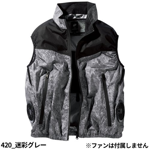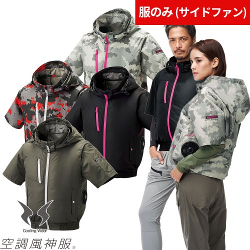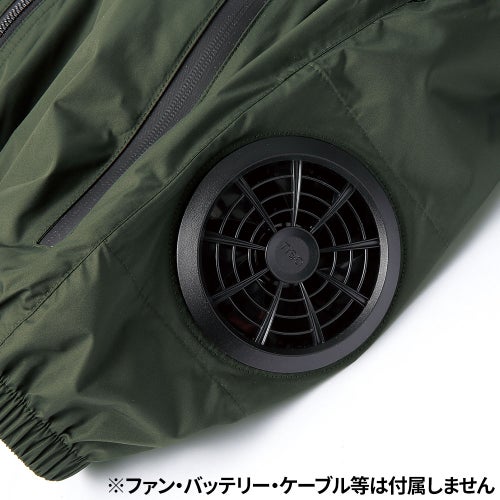 強いインパクトを放つデタッチャブルフードジャケット こだわり抜いた立ち襟・高襟シルエットで360度風が吹き抜ける裏チタン加工を施し遮熱機能を搭載した実用性も兼ね備えた一着■サイドファン仕様ファンの位置が通常よりも脇に配置され重機の運転時にも邪魔にならない■立体風気路首裏の3Dの構造が風の通り道を確保し立体的な風気路が首筋を包み込み風が首筋を吹き抜ける■裏チタン加工遮熱効果 MAX-6.1℃