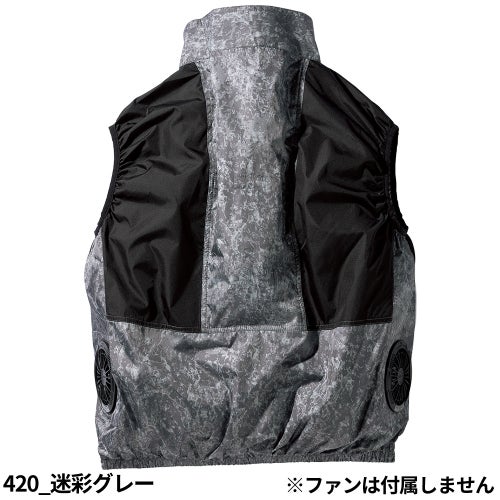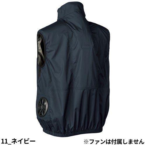 現代の企業ユニフォームニーズにフィットするスポーティなルックスと再生糸使用のエコロジカルなSDGsサイドファンプロダクト ●風がボディ全体を駆け巡るサイドファン取付設計モデル●軽量で空気漏れを防ぐ機能も備えた再生糸使用のエコロジカルなSDGs配慮素材●背ヨークに保冷剤(別売)を収納可能な通気エアダクトポケットを装備●ヘルメット収納フード(着脱可能)、フックハンガー、背ランヤードホールを配備しフルハーネスに完全対応●男性ユニセックスの着用に対応