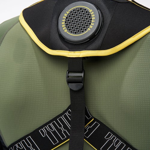 脱着簡単!はめ込み式のペルチェデバイス ●上着を着ても排気面をふさがない仕様●昨年モデルより排熱温度マイナス5℃、冷却温度マイナス3℃(当社比)●ゆらぎモード搭載●脱着簡単!はめこみ式のペルチェデバイス●フルハーネス着用時も干渉しない仕様