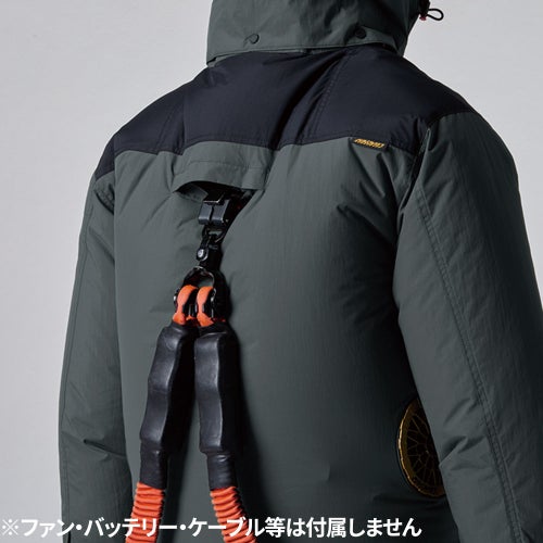 遮熱コーティング フルハーネス対応 炎天下で長時間作業される方にオススメ!!未加工品に比べマイナス5℃の遮熱効果を発揮します。■新開発サイドファン■背中にランヤード用ファスナー■両胸にランヤードフック用Dカン■ファン落下防止メッシュ(XE98024除く)■瞬時に外せるクイックファスナー