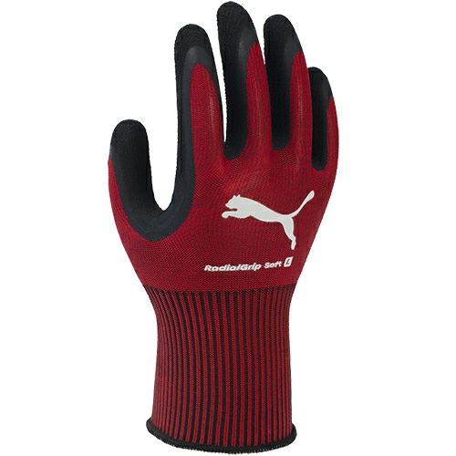 背抜き手袋のロングセラー 「グリップ」シリーズ 独自の立体成型人間の手の自然な形に近い独自の立体成型で、長時間の作業でも疲れにくい● 繊維の組み合わせにより、肌ざわりがよくなめらかな風合いを実現しています● カーボンブラックを樹脂に配合しています● 天然ゴムを手のひらにコーティングした、通気性に優れた背抜き手袋です● 葉脈状の特殊スベリ止め加工により、高いスベリ止め効果、グリップ力があり、やわらかく手にフィットするため作業性に優れています● 繊維部分は編み目が細かく縫い合わせのない、独自の10ゲージ・シームレス編み手袋です● 繊維部分には抗菌防臭加工を施しているため、繊維上の細菌の増殖を抑制し、汗などによる臭いの発生を抑えます● 裾部分は、ほつれを防ぐオーバーロック加工を施しています