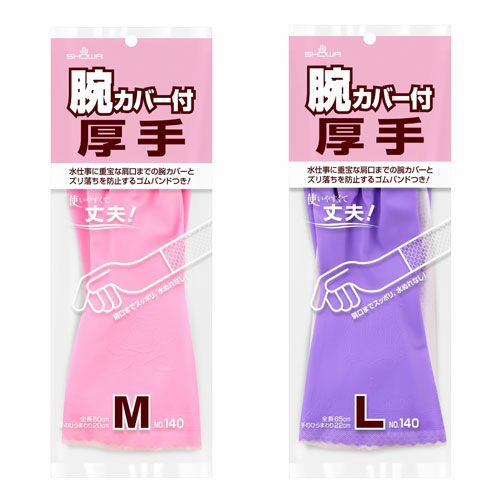 【ゴム手袋】腕カバー付厚手 [5双入] 品番:No.140 (M・Lサイズ) ショーワグローブ (作業用手袋) ビニール手袋 肩口までのロングタイプ 裏毛あり 耐油性 耐摩耗性 耐侯性 においが少ない 塩ビ手袋 滑り止め 農業 水産・漁業 SHOWA