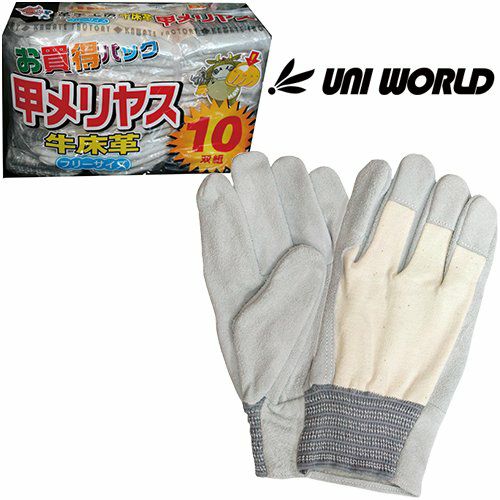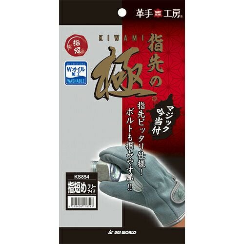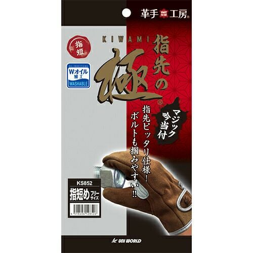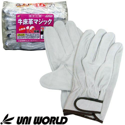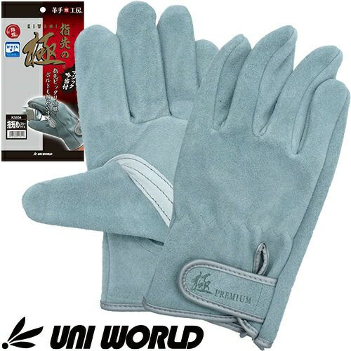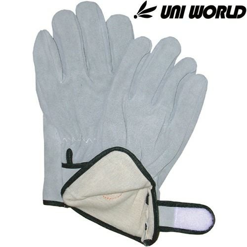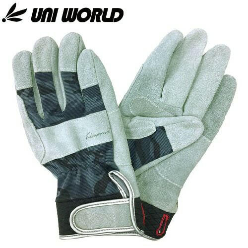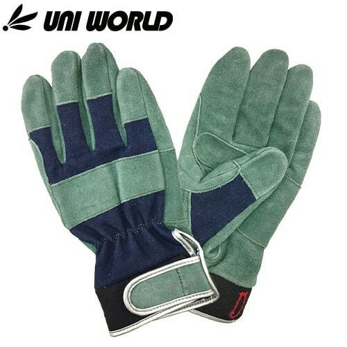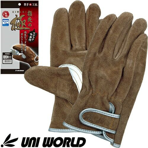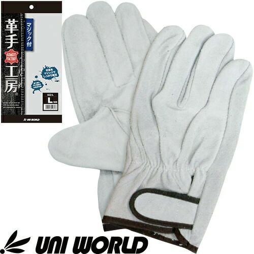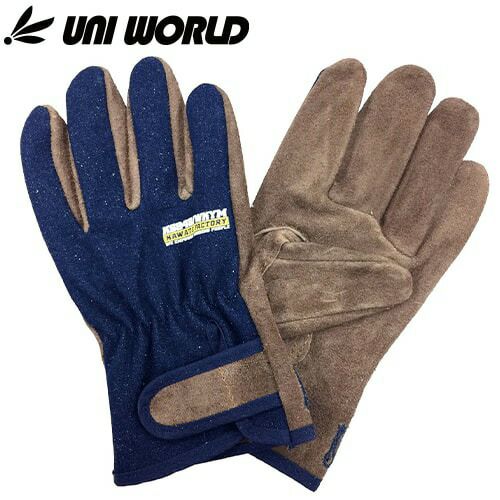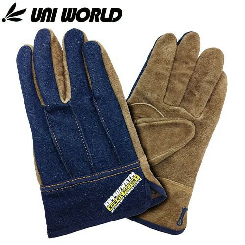 牛床革手袋 ユニワールド マジックテープ 革手袋 作業用手袋 革手工房 洗える Wオイル加工 オイルブラウンデニム ストレッチ 背縫い フックホール 牛革 ストレッチデニム 甲メリヤス 人気 安い 激安 おしゃれ かっこいい 作業グローブ KS848