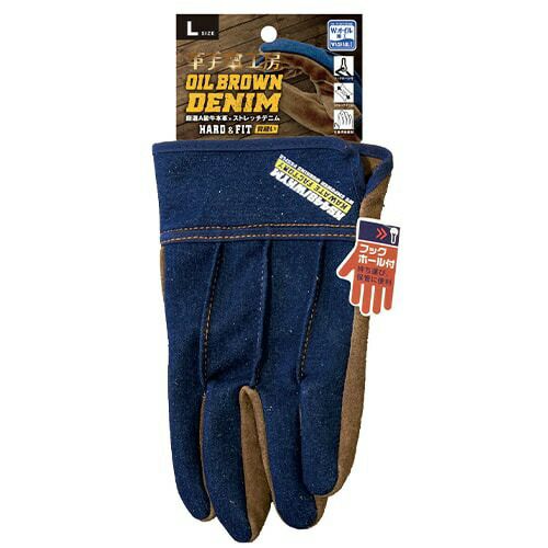 保管に便利なフックホール手袋シリーズ ・水に濡れても硬くなりにくい洗えるWオイル加工・ストレッチデニム生地で柔らかい