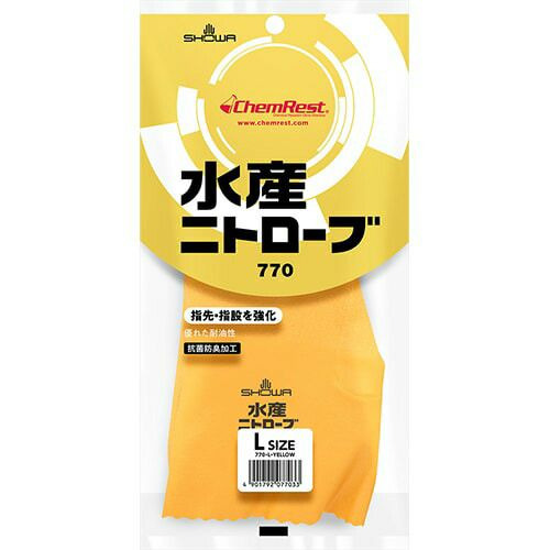 【ゴム手袋】水産ニトローブ [10双入] 品番:No.770 (S・M・L・LLサイズ) ショーワグローブ (作業用手袋) ビニール手袋 裏布付き 食品衛生法適合品 耐油性 耐薬品性 突き刺しに強い 破れにくい 耐熱性 ニトリルゴム 水産 漁 二トリルゴム手袋 SHOWA