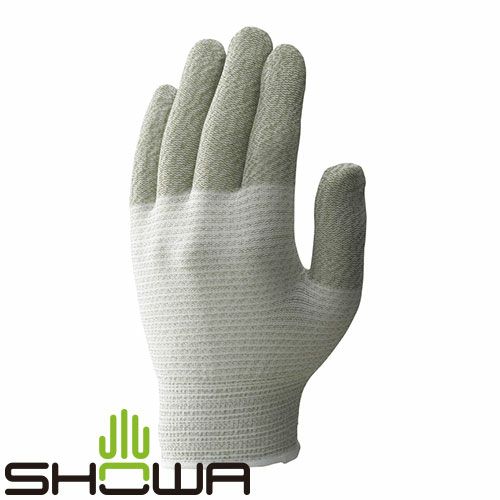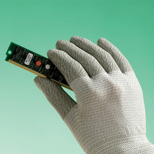 手のひらの導電糸(アクリロニトル・硫化銅複合繊維)を減らし、重要な指先部分はそのままに低コスト化を実現した静電気対策手袋。