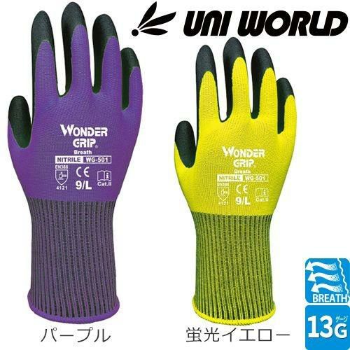 背抜き手袋 ユニワールド ワンダーグリップ ブレス WONDER GRIP Breath 1双 WG501 コーティング手袋 ニトリルゴムコーティング