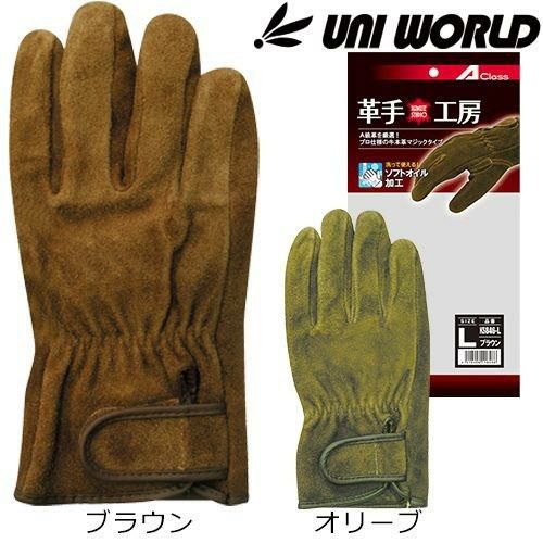 牛床革手袋(オイル加工) ユニワールド A級 オイル牛床革 マジック付き 1双 KS846 KS866 総革製 革手袋