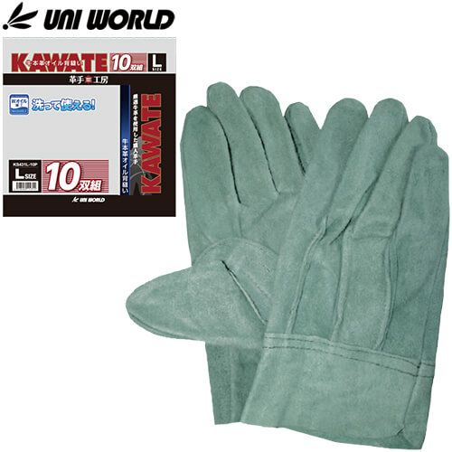 6. 牛床革手袋(オイル加工) ユニワールド オイル牛床革 お買い得パック 牛本革 背縫い Wオイル加工 KS431-10P 革手袋 総革製 牛床革手袋