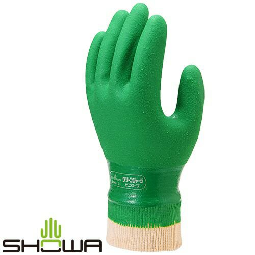 【ゴム手袋】グリーンジャージ ビニローブ [10双入] 品番:No.600 (S・M・L・LLサイズ) ショーワグローブ (作業用手袋) ビニール手袋 裾口ジャージ加工 抗菌防臭加工 オールコート 滑り止め 耐油性 耐侯性 においが少ない 塩ビ手袋 SHOWA