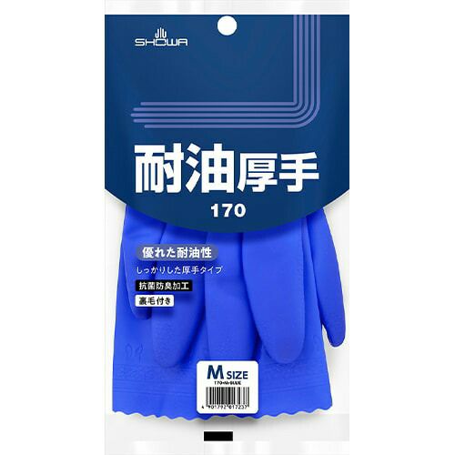 【ゴム手袋】耐油厚手 [10双入] 品番:No.170 (M・Lサイズ) ショーワグローブ (作業用手袋) ビニール手袋 裏布付き 耐油 滑り止め 耐久性 耐油性 耐摩耗性 耐侯性 においが少ない 農業 清掃・サービス業 機械工業 自動車関 塩ビ手袋 SHOWA