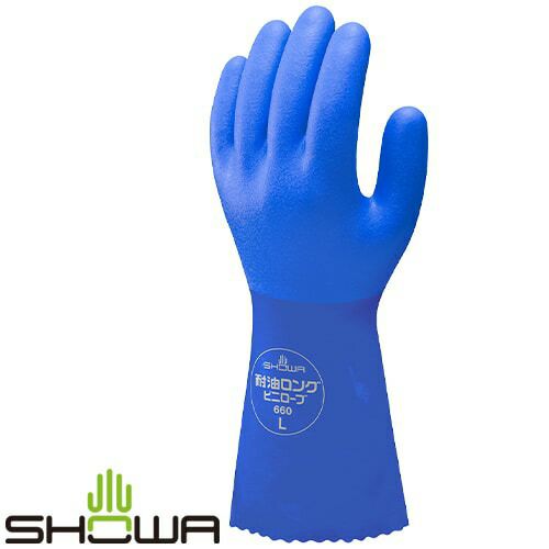 【ゴム手袋】耐油ロング ビニローブ [10双入] 品番:No.660 (M・L・LLサイズ) ショーワグローブ (作業用手袋) ビニール手袋 ロング 耐油 滑り止め 裏布付き 耐摩耗性 耐侯性 においが少ない 塩ビ手袋 農業 水 SHOWA