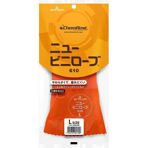 【ゴム手袋】ニュービニローブ [10双入] 品番:No.610 (S・M・L・LLサイズ) ショーワグローブ (作業用手袋) ビニール手袋 裏布付き 滑り止め 柔らか 耐油性 耐摩耗性 耐侯性 においが少ない 塩化ビニール手袋 農業 水産・漁 塩ビ手袋 SHOWA