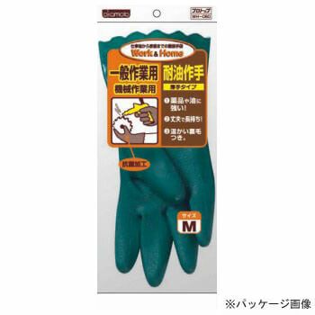 【ゴム手袋】耐油作業手袋 厚手タイプ 裏毛付 [10双入] 品番:WH-060 (M・Lサイズ) オカモト (作業用手袋) ビニール手袋 耐油 耐久性 耐薬品 裏毛 耐油性 耐摩耗性 耐侯性 においが少ない 一般作業 機械作業 塩ビ手袋