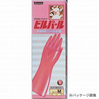 【ゴム手袋】ビルパール厚手(箱入) ビニール手袋 [60双入] 品番:NO-001 (M・Lサイズ) オカモト (作業用手袋) 裏毛 耐久性 滑り止め 耐油性 耐摩耗性 耐侯性 においが少ない 洗濯 炊事 掃除 洗車 ガーデニング 塩ビ手袋