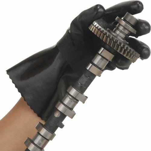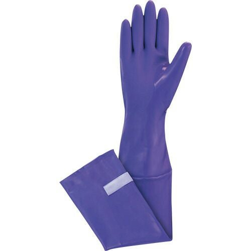 肩口までのロングタイプで腕全体を保護。 ・裾部分にズリ落ちを防止するゴムバンド付き。・厚手でやわらかい手袋部分、傷つきやすい指先は2度漬け加工で強化。・特殊パターンにより、高いスベリ止め効果を発揮。