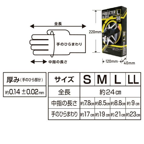 ※食品衛生法適合の厚手タイプの手袋(ゴム・ビニール手袋)はコチラ。