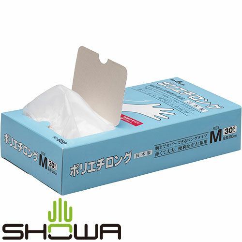 【使い捨て手袋】ポリエチロング30枚入 品番:No.860 (Mサイズ) ショーワグローブ 作業用手袋 使いきり手袋 粉なし 食品衛生法適合品 軽い 薄い 耐水性 耐油性 食品加工 介護 調理 毛染め やわらかい 耐溶剤性 耐薬品性 ポリエチレン・ポリプロピレン SHOWA