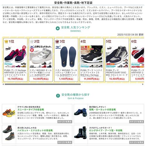 塩素系のような刺激臭がなく、布製品や合成皮革にも比較的やさしいため、安全靴の洗浄にも利用可能です。
