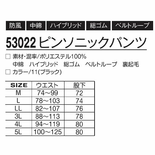 作業服 カーゴパンツ アタックベース ATACK BASE ピンソニック防寒パンツ 中綿 通気性 薄手 53022 作業着 通年 秋冬 50代 60代 おしゃれ カジュアル アウトドア かっこいい 黒