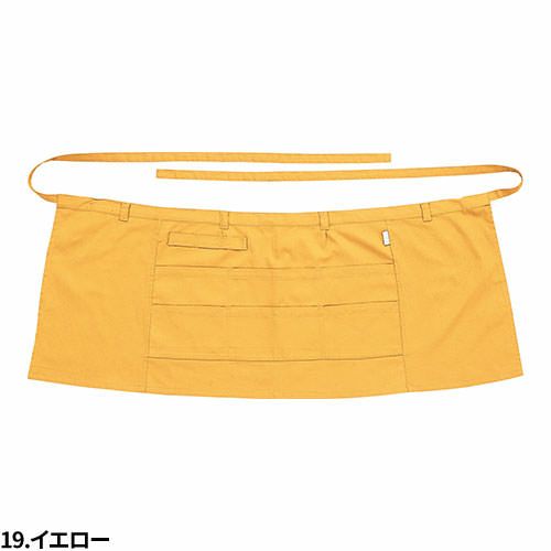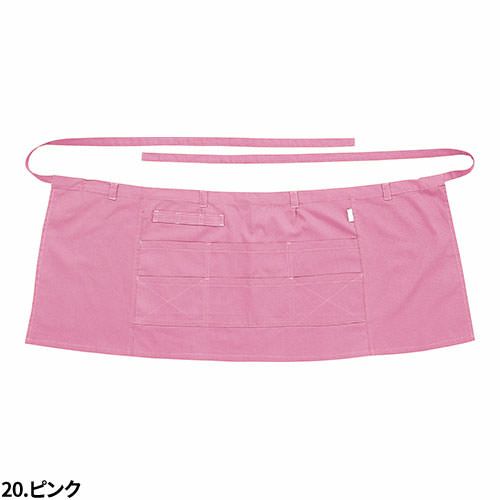 ロープ式のエプロン。首ヒモは首に引っ掛けて左右のヒモは背中で結びます。左右のポケットと胸にペン差しがあります。フリーサイズ:丈85x幅62cm