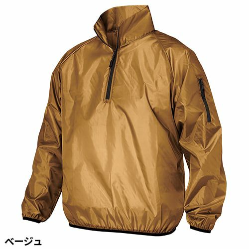 ・「フードなし」のハーフジップヤッケ(ハイネック)です。・左手部分に小物収納に便利なファスナー付ポケットを配置しています。・肩や腕が動かしやすい、ラグラン袖を採用!・手首と腰部分にタイピングゴム採用で、小さなゴミや風の侵入をブロック!・防風、撥水加工で冷たい風や寒さから体をガード!