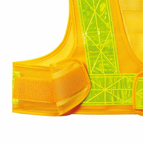 空調服TMの上から着用可能ショート安全ベスト ショート丈のため空調服TM着用時もファンに干渉しません。再帰性反射テープ・夜間の視認性を高める再帰性反射材を使用ダイヤの型押しで水の浸入をストップ!頼もしい反射力の70mmの幅広テープにダイヤの型押しを施して水の浸入を防ぎ、はがれにくさをアップ簡単装着マジックテープ・大きなマジックテープで脱着簡単