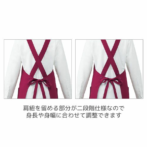 多機能なのにこんなにお得!シンプルな無地で使いやすい、コスパで選ぶエプロン 太めのクロス型肩紐が心地よくフィットし作業が快適!肩紐が2段階仕様で体の大きさに合わせて調整できます