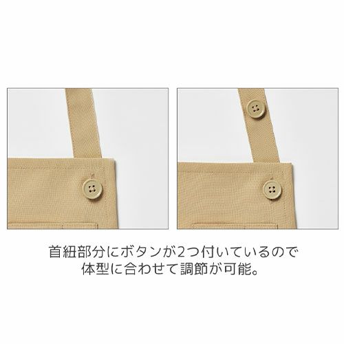 多機能なのにこんなにお得!シンプルな無地で使いやすい、コスパで選ぶエプロン 腰紐を結んで調整するから首への負担を軽減してくれます。首紐のボタンで2段階調節が可能。