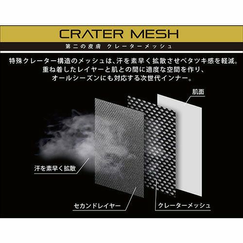 季節を選ばない。オールシーズン対応 特殊クレーター構造のメッシュが汗を素早く拡散しベタつきを軽減。冬は衣服の間に空間を作り、保温にも優れます。