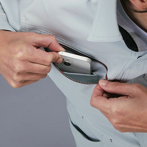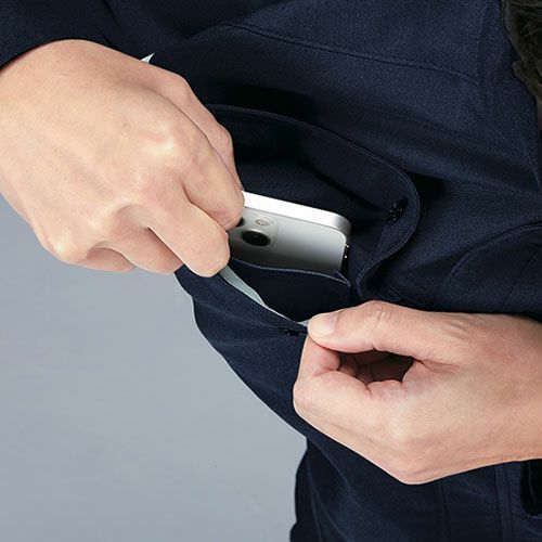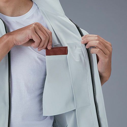 リラックスフィットシルエットなのにシャープなラインで見た目スッキリ ・タテヨコに伸びる4-WAYストレッチによりストレスフリーな着心地・軽くてサラッとした肌触り・便利なファスナーポケットとペン差しポケット付き