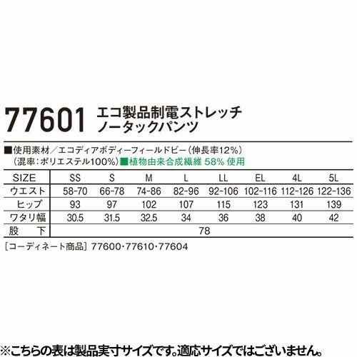 作業着 作業服 スラックス 春夏 エコ製品制電ストレッチノータックパンツ 15001 作業着 春夏 SDGs エコロジカル 環境配慮型 植物由来 エコマーク グリーン購入法対応 帯電防止 男女兼用 会社 工場 倉庫 企業 制服