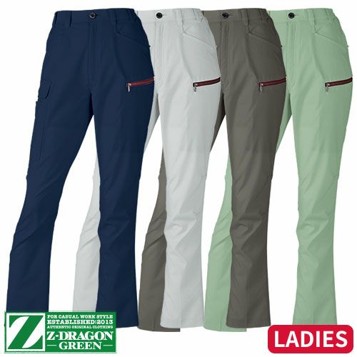 作業着 作業服 レディース パンツ 春夏 Z-DRAGON GREEN エコ製品制電ストレッチレディスパンツ(裏付) 77606 作業着 春夏 SDGs エコロジカル 環境配慮型 植物由来 エコマーク グリーン購入法対応 帯電防止 男女兼用 シャープなスタイル スタイリッシュ カジュアル