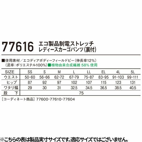作業着 作業服 レディース パンツ 春夏 Z-DRAGON GREEN エコ製品制電ストレッチレディスカーゴパンツ(裏付) 77616 作業着 春夏 SDGs エコロジカル 環境配慮型 植物由来 エコマーク グリーン購入法対応 帯電防止 男女兼用 シャープなスタイル スタイリッシュ カジュアル