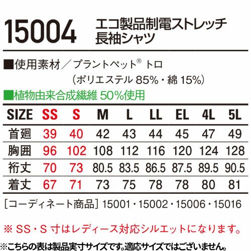 作業着 作業服 長袖シャツ エコ製品制電ストレッチ長袖シャツ 15004 作業着 通年 秋冬 SDGs エコロジカル 環境配慮型 植物由来 エコマーク グリーン購入法対応 帯電防止 男女兼用 会社 工場 倉庫 企業 制服
