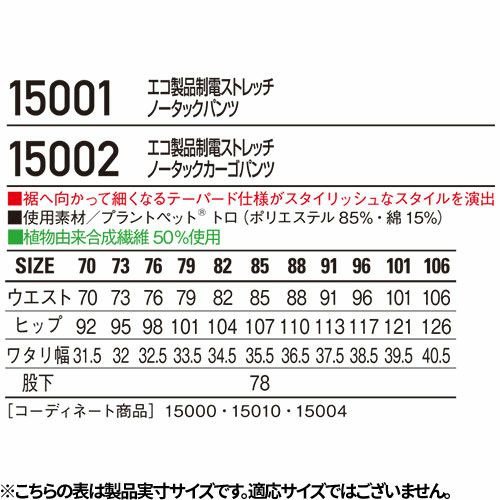作業着 作業服 カーゴパンツ 春夏 エコ製品制電ストレッチノータックカーゴパンツ 15002 作業着 春夏 SDGs エコロジカル 環境配慮型 植物由来 エコマーク グリーン購入法対応 帯電防止 男女兼用 会社 工場 倉庫 企業 制服