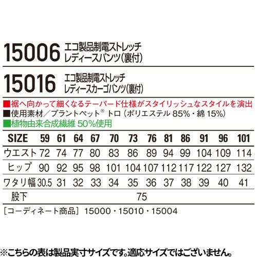 作業着 作業服 レディース パンツ 春夏 エコ製品制電ストレッチレディスパンツ(裏付) 15006 作業着 春夏 SDGs エコロジカル 環境配慮型 植物由来 エコマーク グリーン購入法対応 帯電防止 男女兼用 会社 工場 倉庫 企業 制服