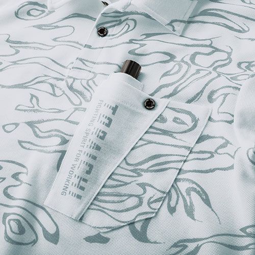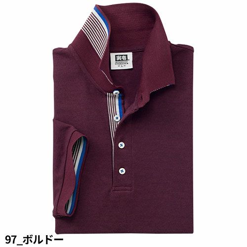 最大の特徴は清潔感。消臭加工が施され、衿裏、袖裏のライン使いで、プレーンになりがちなポロスタイルを一変絶妙のデザイン性に、感性が感じられるライン入り。他にはない多色展開も魅力の一つ ●衿裏はアクセントとなるライン入り●前立部のライン入り●袖口のライン入り