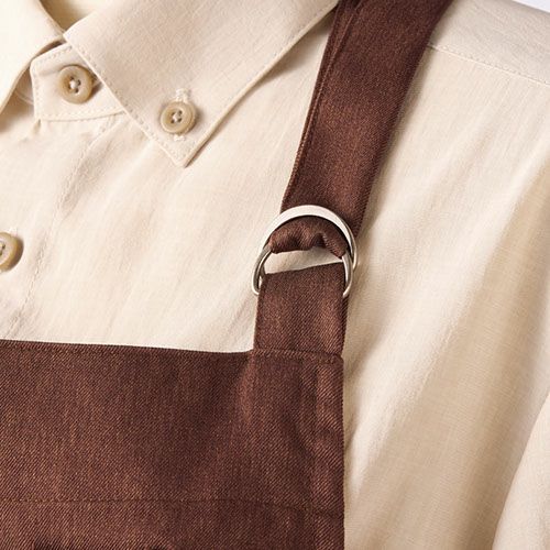 人気の首掛けタイプを、シンプルに着こなしやすく。 できることからSDGsを。環境へのやさしさをカタチにしてみませんか。野菜や植物など、自然由来の色で染めた環境に配慮したエコ素材「オニベジシリーズ」。着脱しやすい首掛けエプロンタイプで金具で長さ調整ができ幅広いサイズに対応。腰ひもは穴を通して結ぶことで着崩れを防止することができる仕様です。