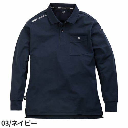 作業ウェア PUMA プーマ 長袖ポロシャツ メンズ 吸汗 速乾 ストレッチ 作業着 作業服 UVカット クールビズ 制服 ポロシャツ ユニフォーム ポケット スポーツ ゴルフ 紺 黒 白 通年 ワーク シンプル PW-4024A