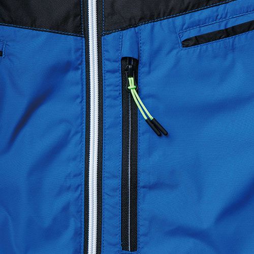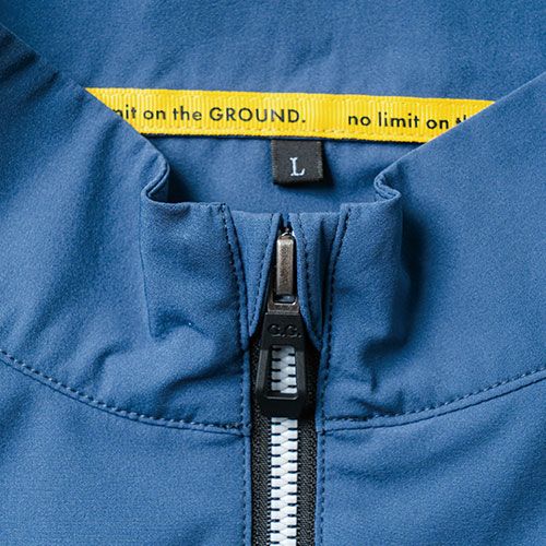 肩部分にパッド挿入専用のポケット付き吸汗速乾に優れたエキスパンドメッシュ素材を採用し、汗冷えを防ぎ、暑い夏場も快適に着用していただけます。 ●左右務歯の色が違うアシンメトリーファスナー●物が落ちにくいファスナー胸ポケット●左袖にペン差しポケット付き●前開きファスナーにはチンガード配置●右肩にピスネーム●左肩に寅壱オリジナル反射プリント入り●肩の内側にパッドを入れるポケット