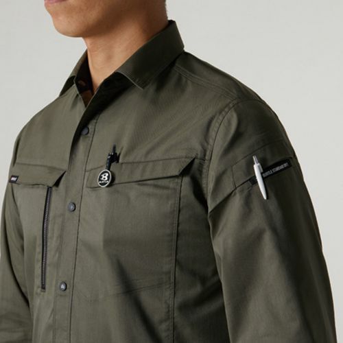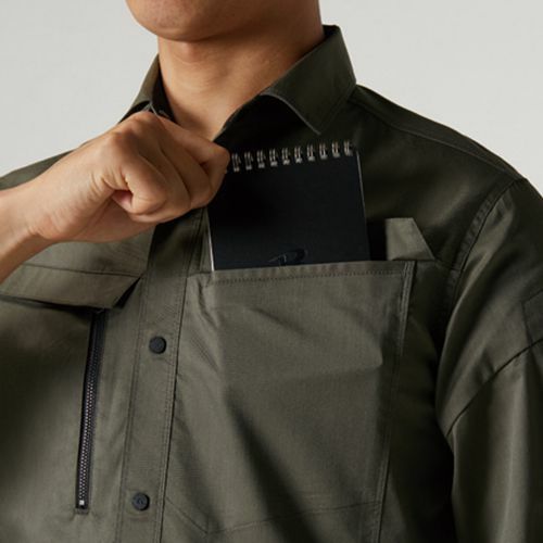 タテ・ヨコ全方位に伸びるDELTAナイロン4Dストレッチナイロンによる強度とストレッチでハードで快適 ■DELTAナイロン4Dストレッチタテ・ヨコ全方位に伸びるTSDESIGN独自開発素材布帛ナイロン生地による強度とドライタッチな質感が特徴■TS MERGE TECH左胸ポケット部分は縫製箇所を減らすことで、縫い目の肌あたりを軽減します。