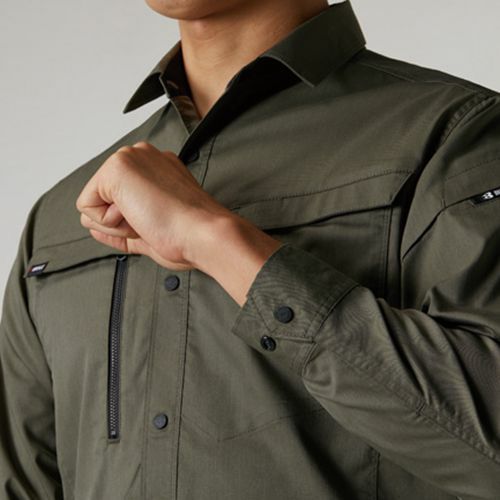 パウダータッチで軽くて肌触りに優れた素材 低発塵性と着心地に優れたポリエステル100%の素材です。軽く肌触りに優れたパウダータッチと快適な作業をサポートするストレッチ性が特長です。暑熱環境を中心に常温環境まで対応します。また、長時間の着用でも快適です。さらにユニフォームにかかる費用を抑えられ、コストパフォーマンスも高いです!