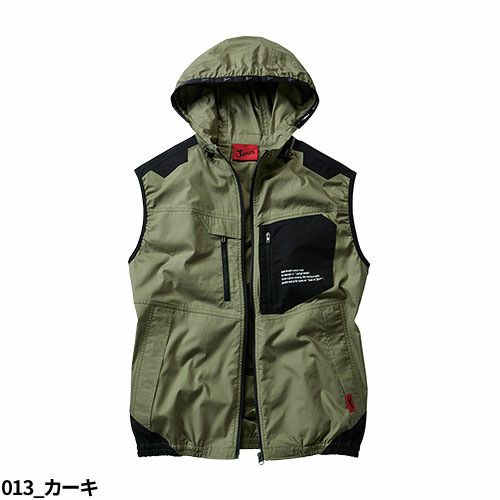 綿100%素材使用の空調服ベスト アウトドアティストのデザインでハードワークにも適したフード付き空調服ベスト