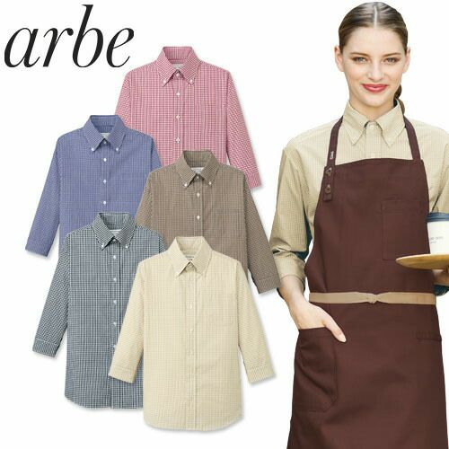 シャツ ワイシャツ チトセ アルベ arbe ギンガムチェック 半袖ボタンダウンシャツ EP-8534 飲食店 制服 ユニフォーム メンズ レディース レストラン カフェ おしゃれ かわいい かっこいい男女兼用 定番 無地