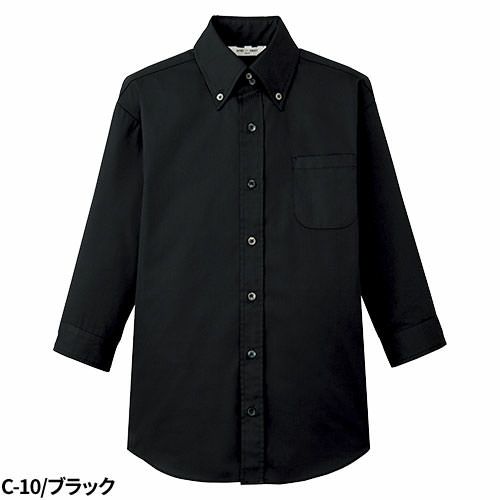白シャツ ホワイト 黒シャツ ブラック ワイシャツ チトセ アルベ arbe 七分袖ボタンダウンシャツ EP-7821 飲食店 制服 ユニフォーム メンズ レディース レストラン カフェ おしゃれ かわいい かっこいい7分袖 男女兼用 定番 無地